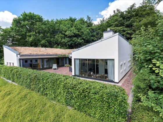 En omfavnende arkitektur….. er nok det der bedst beskriver dette smukke atriumhus fra 1974 i Herning. Husets overordnede formgivning ‘skyder…